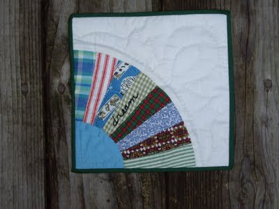 I made this little hand quilted message mat from one vintage fan quilt block, added the simple message and binding. Great little mat for that morning hot drink , as a pot holder or a reminder to dream.